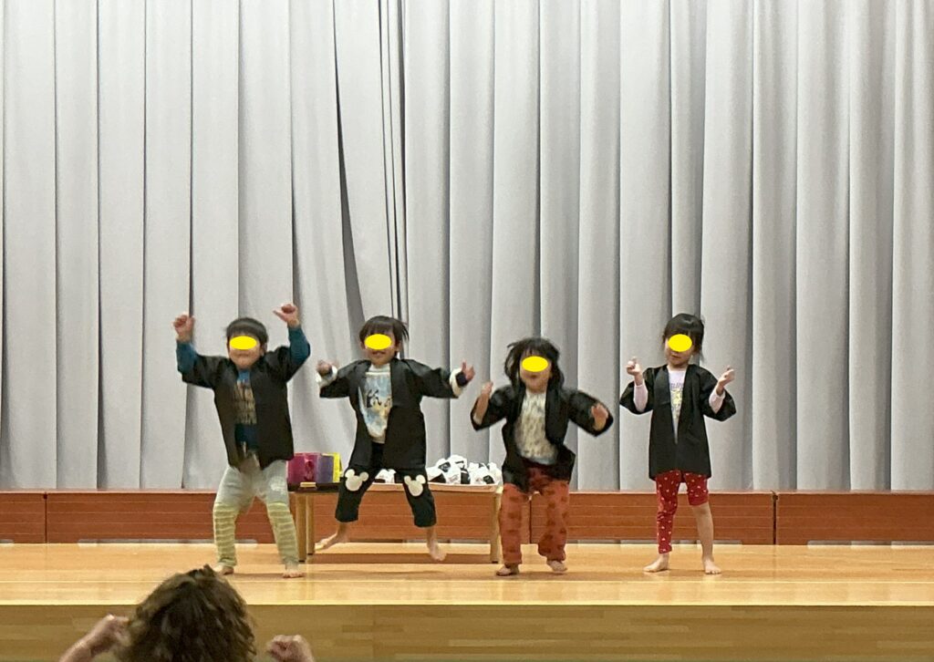 シャボン玉遊びをしました。園では初めてのシャボン玉遊びで子どもたちもとてもうれしそうに遊んでいましたよ。保育者が大きなシャボン玉を飛ばすとみんなで追いかけてつかまえようとする姿がとてもかわいかったです。