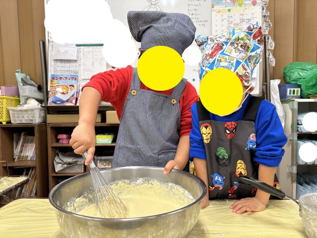先日、とうもろこしの皮むきに初挑戦しました。「これ何?」と聞くと、手遊びに出てくる“とうもろこし”の“しーしー”や“こしこし”の部分をしながら教えてくれた子どもたち。興味はあるものの触るのが嫌な子も多く、保育者がそばに付き、一緒に皮を持つとむくことができました。皮むきが好きな子は、次々と夢中でむいていましたよ。