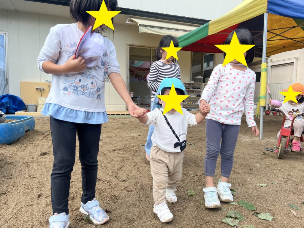 今月は体調がスッキリせず水遊びができず残念でしたが、毛糸の感触を楽しんでミノムシをつくったり、クレヨンでなぐり描きをするなどして楽しんで過ごしました。少しずつ涼しく感じる日もあるので、来月は園庭にも遊びに行きたいと思います!