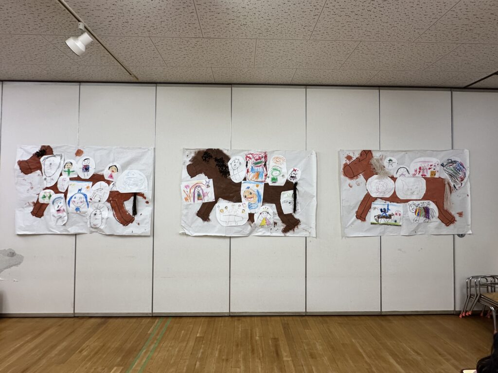 今月はスパンコールやデコレーションボールをつけてクリスマスツリーを作ったり、来年の干支である馬をえのぐ遊びを取り入れ、みんなで作りました。保育園生活、最後となる一年、一人一人の成長を願いながら、馬のように力強く、楽しく駆け回りたいと思います!
